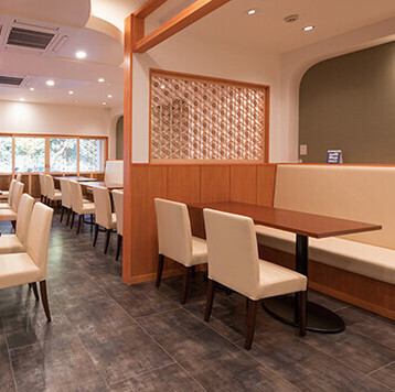 木の温もりと和のアクセントが映える空間。カフェからランチ利用まで幅広く利用可能。